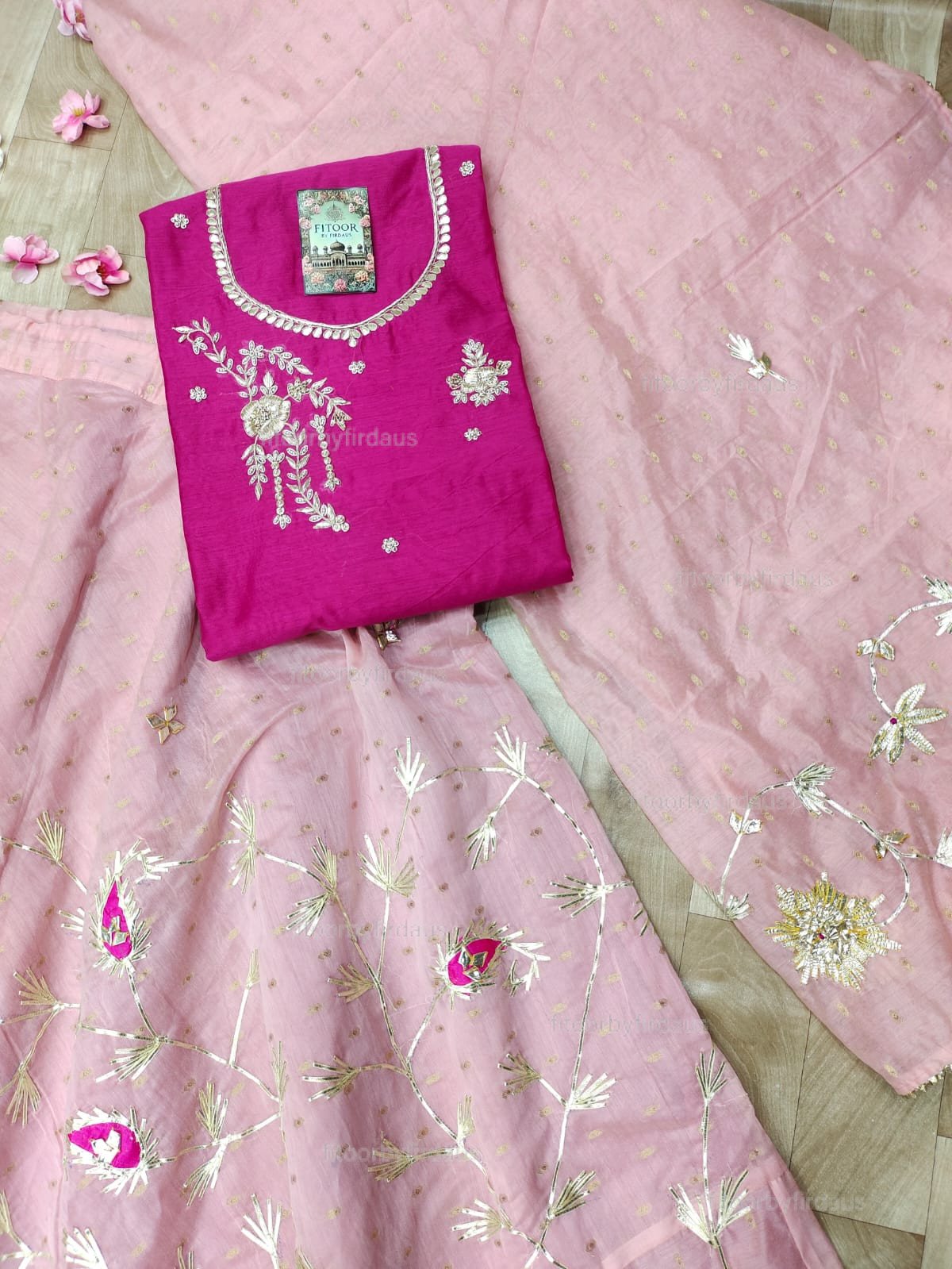 Radiate festive elegance in our handcrafted Skirt Suit Set. Adorned with intricate work on a flowy flare skirt and a delicately embroidered kurta, this ensemble brings royal Rajasthani charm to every twirl. Perfect for weddings, mehendi, or celebrations where tradition meets style.