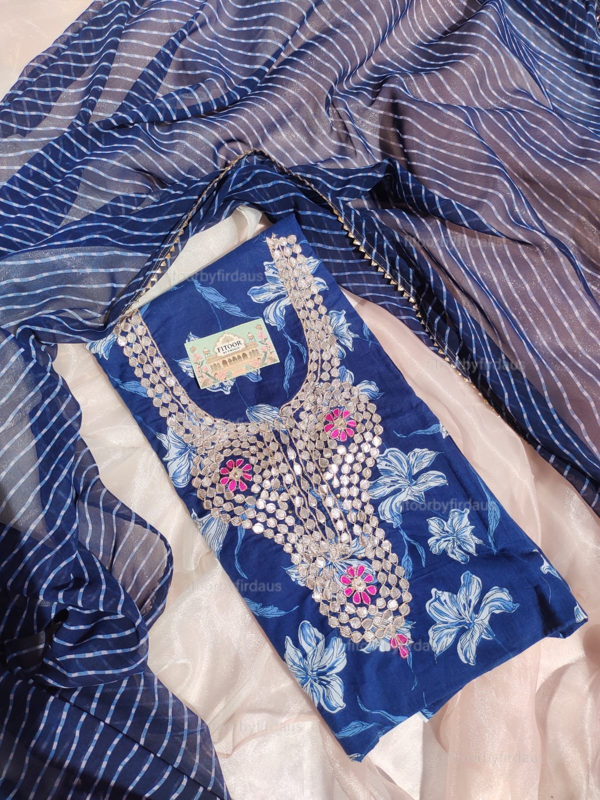 Nothing beats the timeless charm and comfort of a Pure Cotton Suit — and at Fitoor, we elevate this everyday classic into a style statement. Our cotton suits are made from high-quality Jaipuri cotton and hand-block printed or embellished with traditional Rajasthani art forms such as Bandhani, Leheriya, and Dabu.