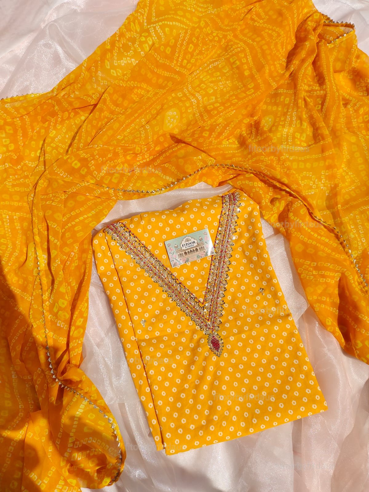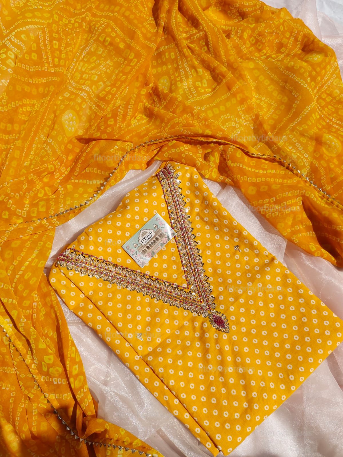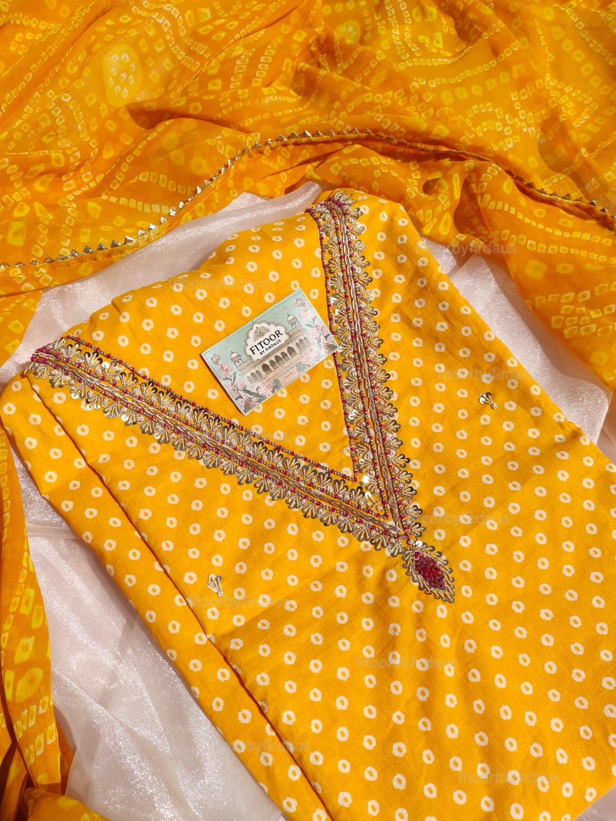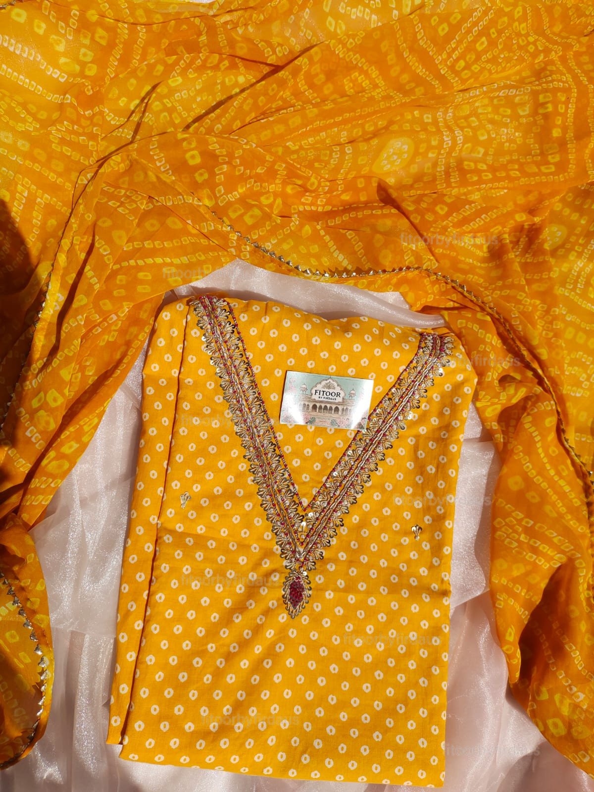 Nothing beats the timeless charm and comfort of a Pure Cotton Suit — and at Fitoor, we elevate this everyday classic into a style statement. Our cotton suits are made from high-quality Jaipuri cotton and hand-block printed or embellished with traditional Rajasthani art forms such as Bandhani, Leheriya, and Dabu.
