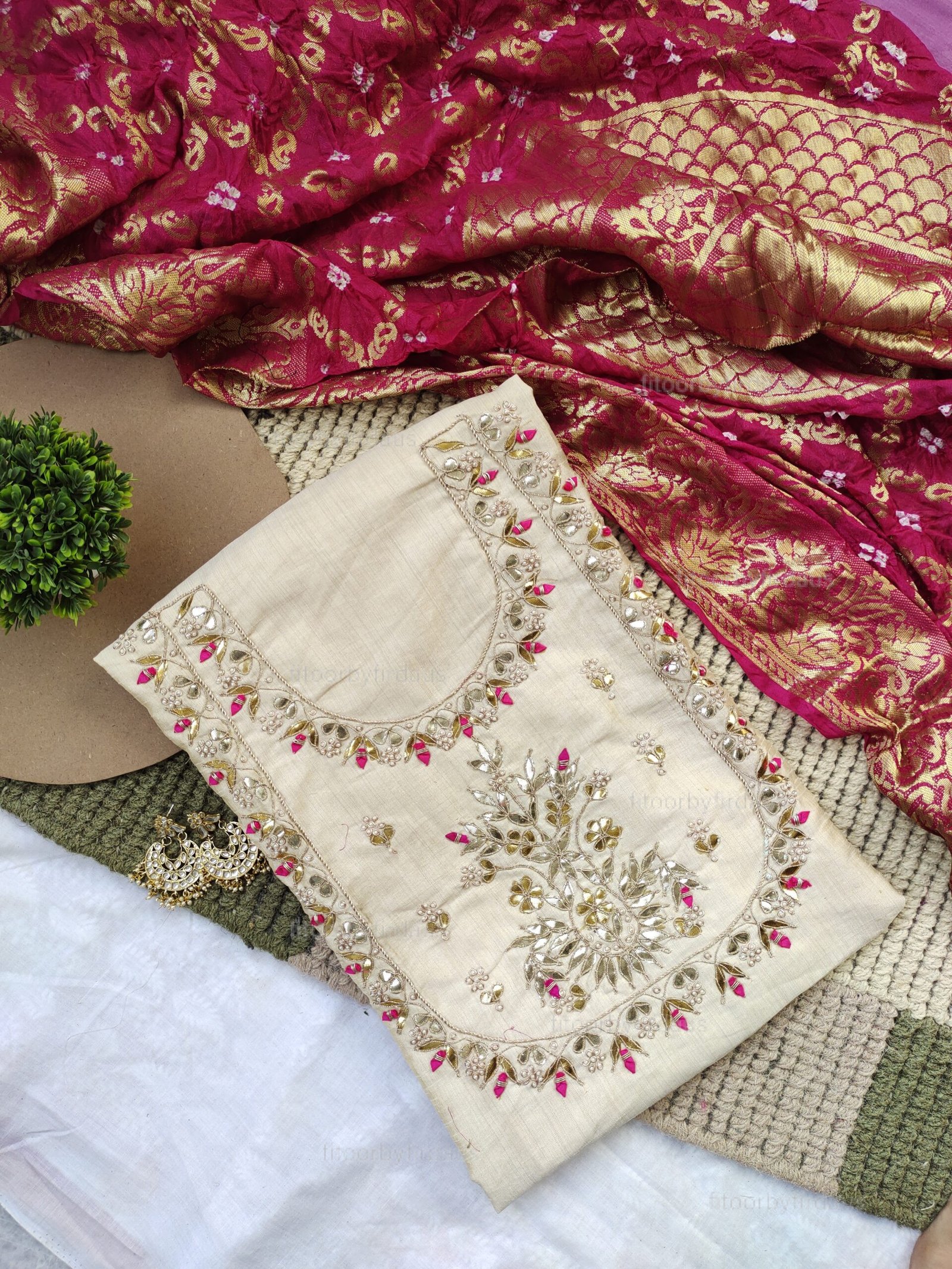 • Every creation is meticulously crafted using traditional techniques such as Zardozi, Bandhani, Leheriya, Gota Patti, Mirror Work, and intricate embroidery. These artisanal touches ensure that no two pieces are ever identical, making each one a unique work of art.