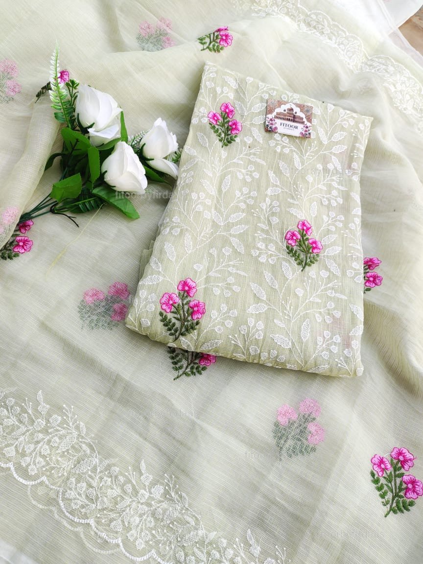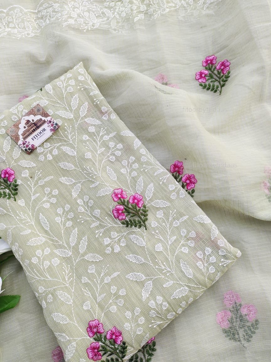 Kota Doria delicate embroidery work suit set