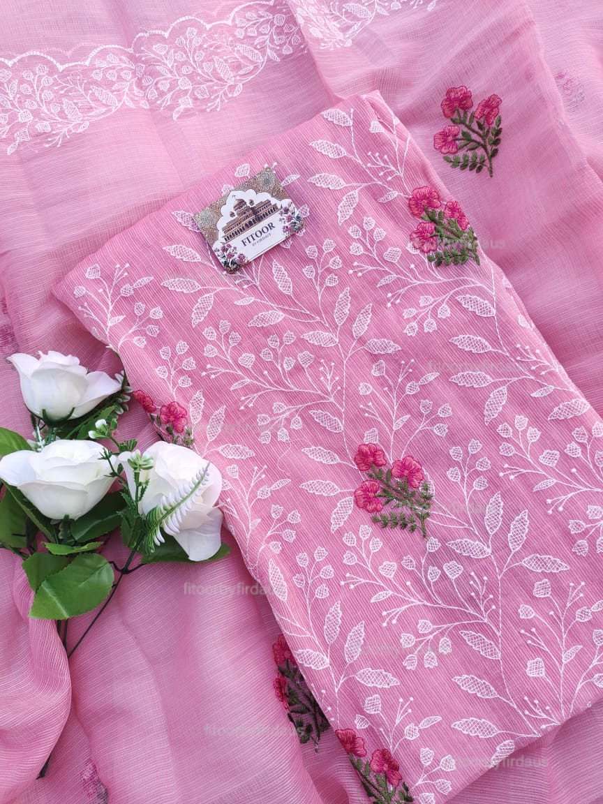 Kota Doria delicate embroidery work suit set