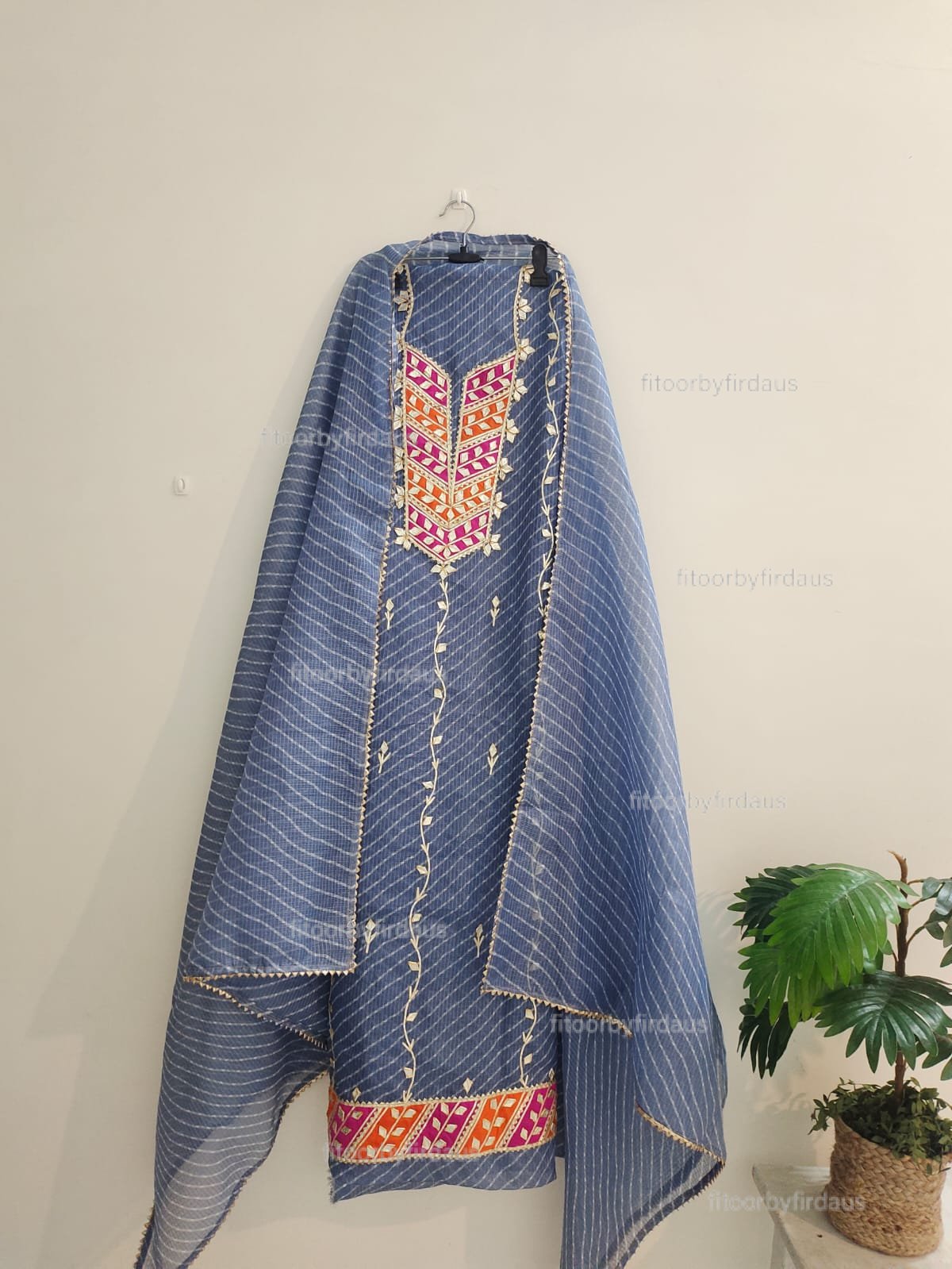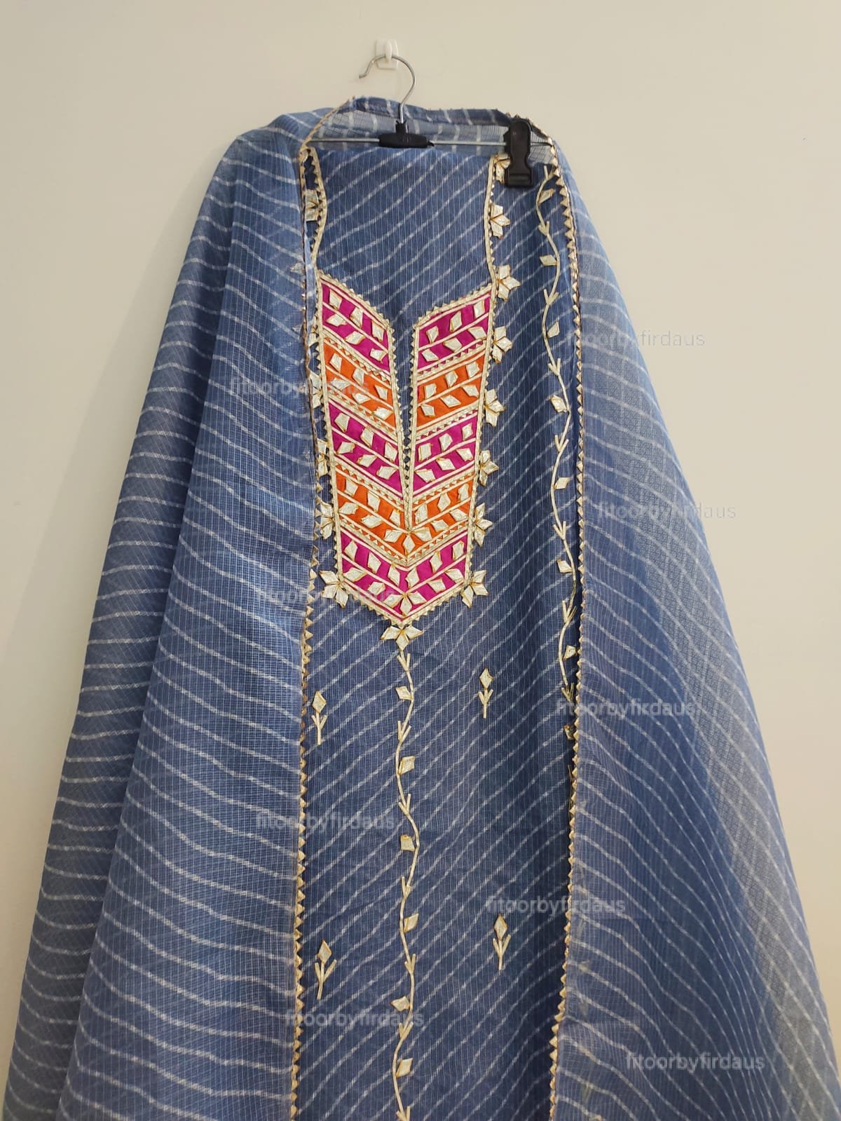 Kota doria suit set with gota patti handwork