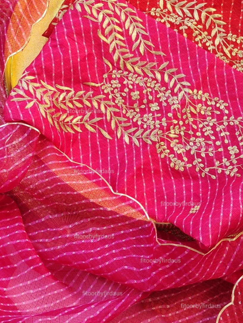 Kota doria suit set with pitta handwork