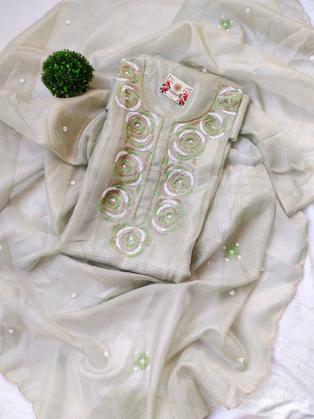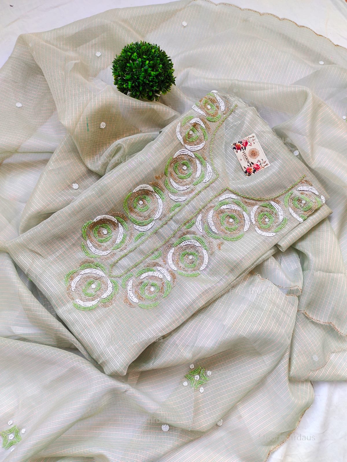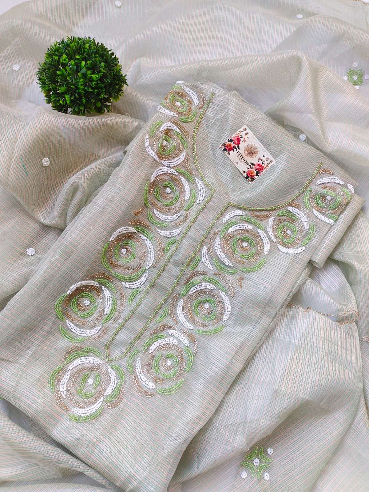 Kota Silk suit set with beaded handwork