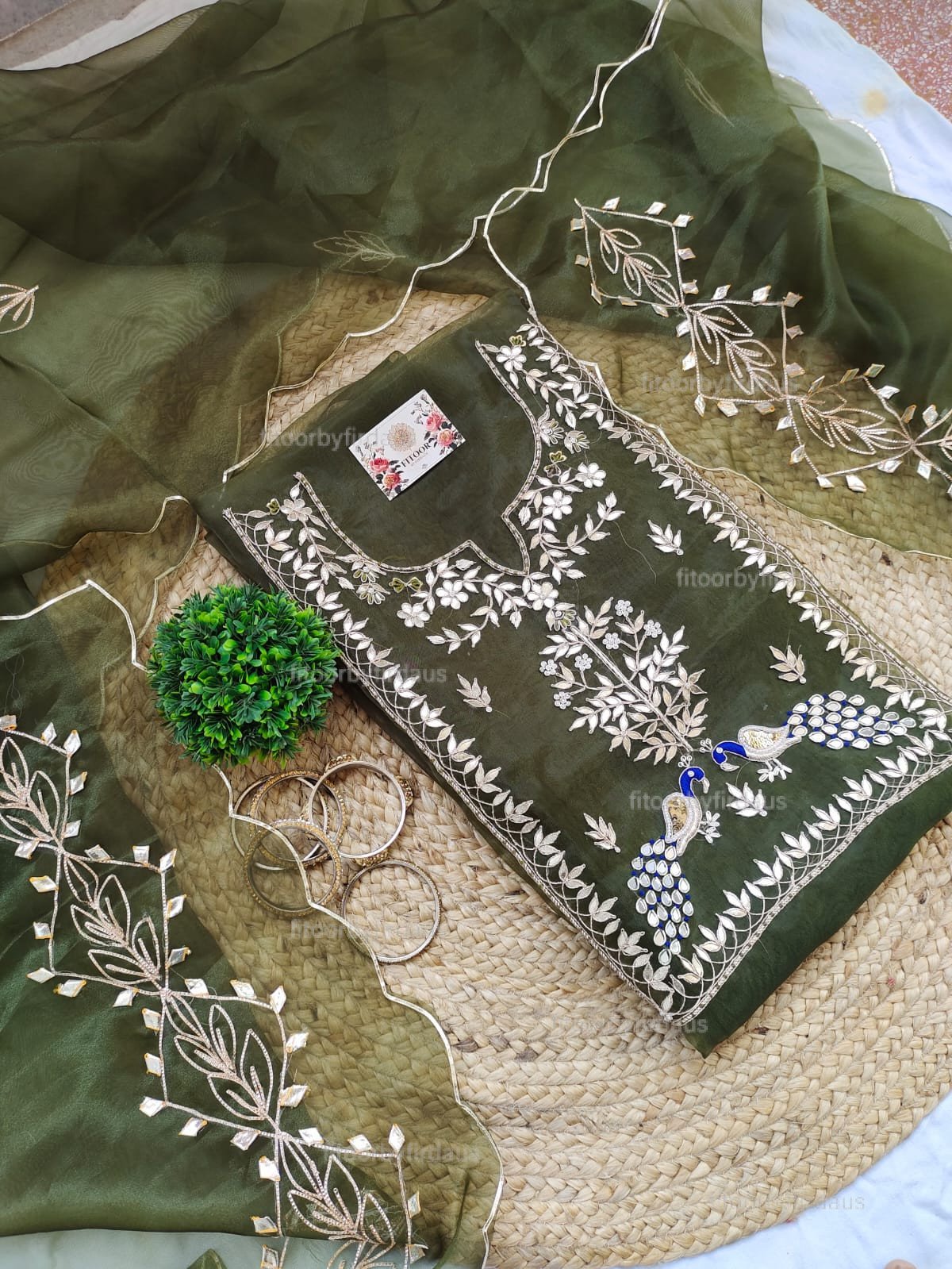 Organza suit set with gota patti hand work with work dupatta