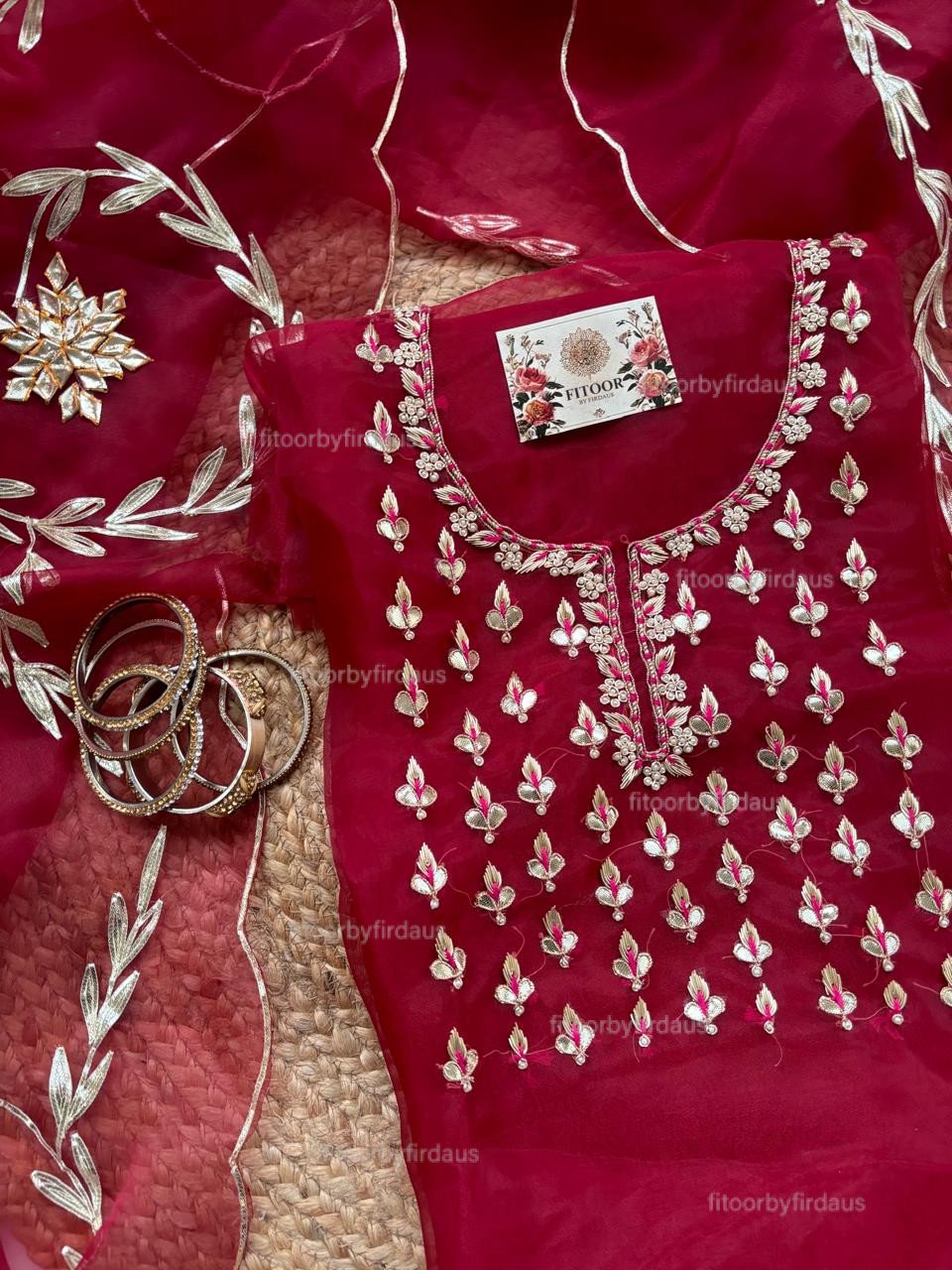 Sheer sophistication takes form in our Organza Suits, designed for the modern muse who loves a touch of magic in her wardrobe. With their translucent texture and crisp fall, organza suits are both romantic and regal. They create a graceful silhouette, adding volume without heaviness — perfect for sangeets, receptions, or styled photo-shoots.