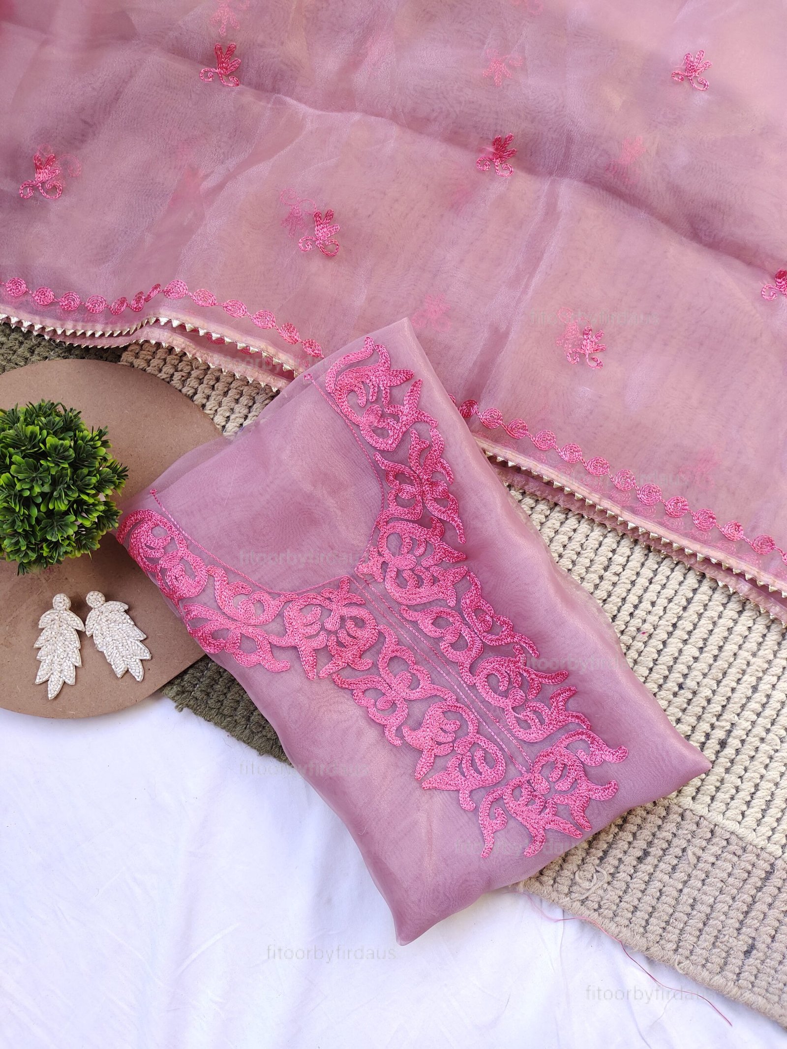 Pink Organza suit set with thread work
