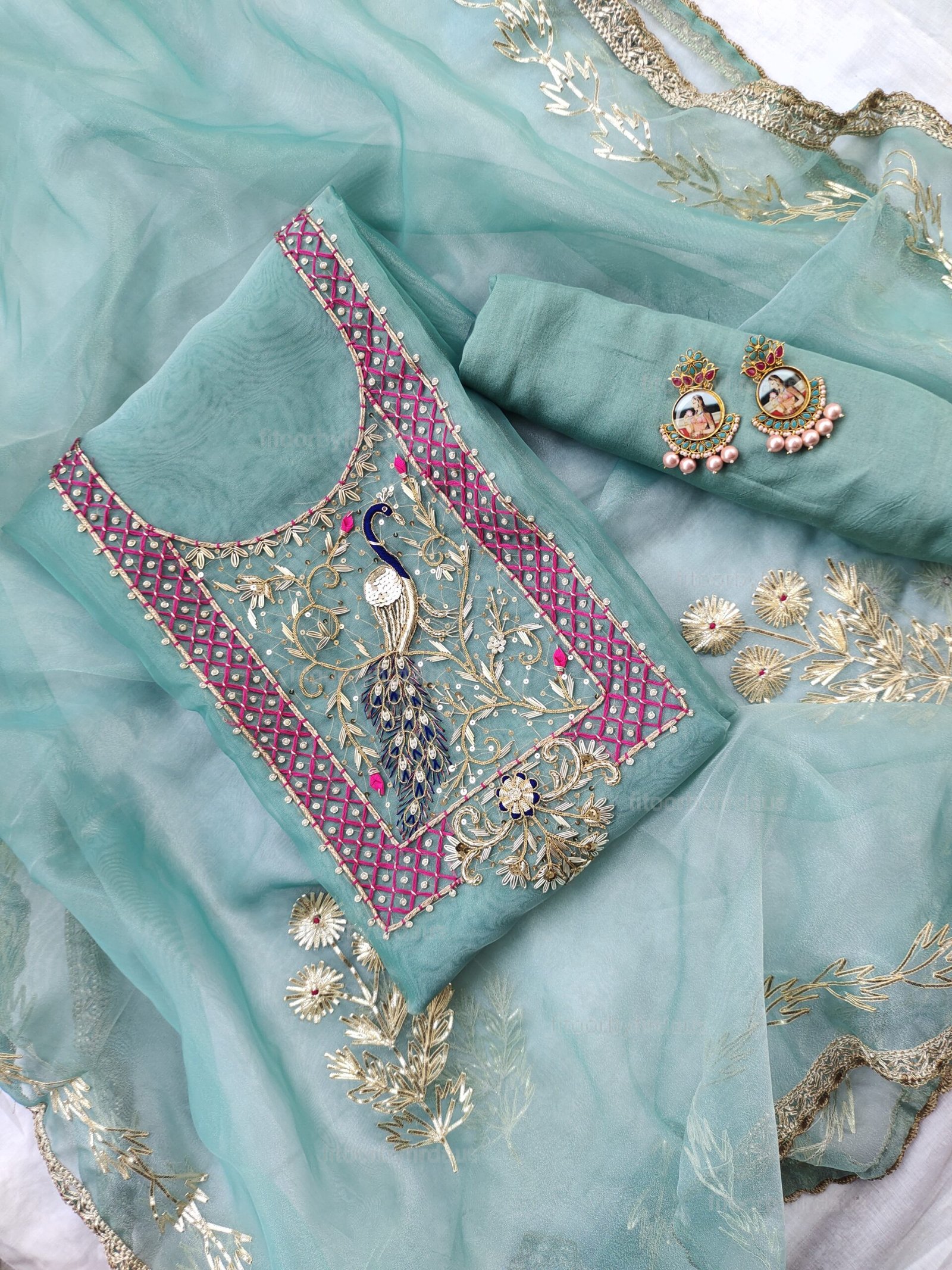 Organza suit set with zardozi work