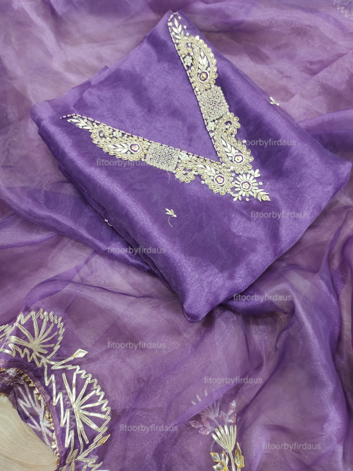 Organza suit set with zardozi work