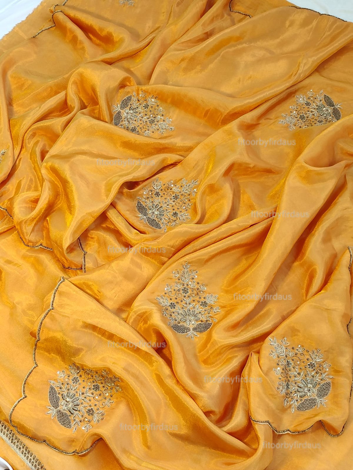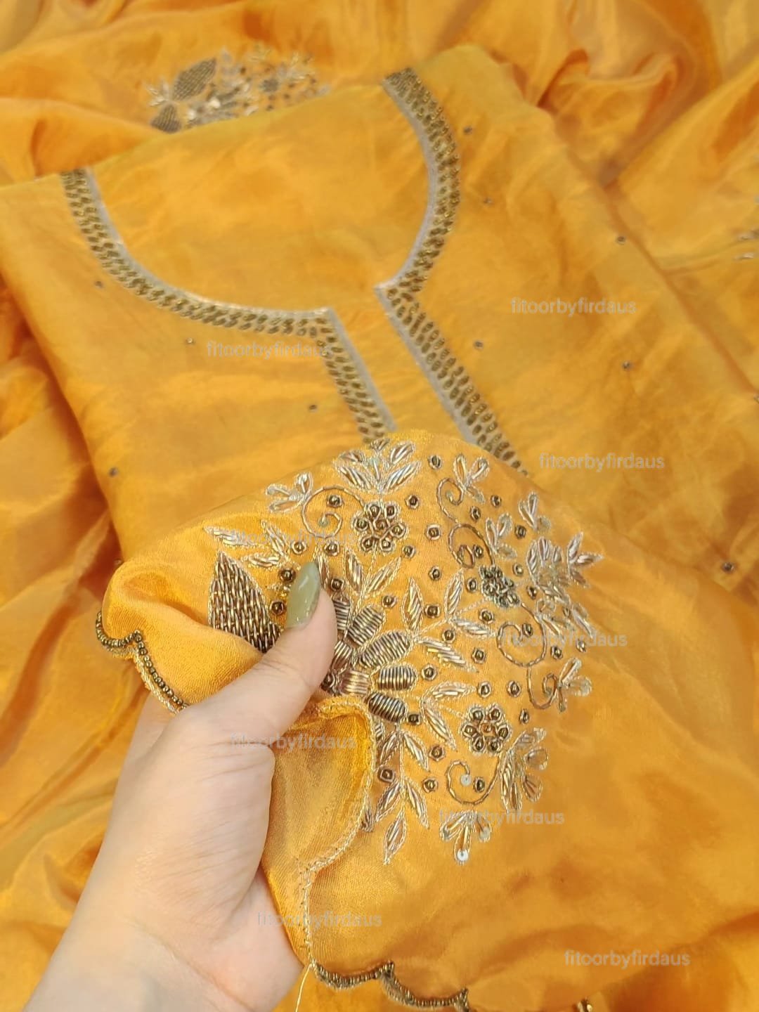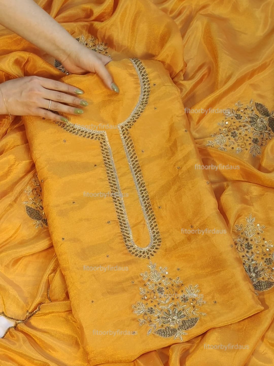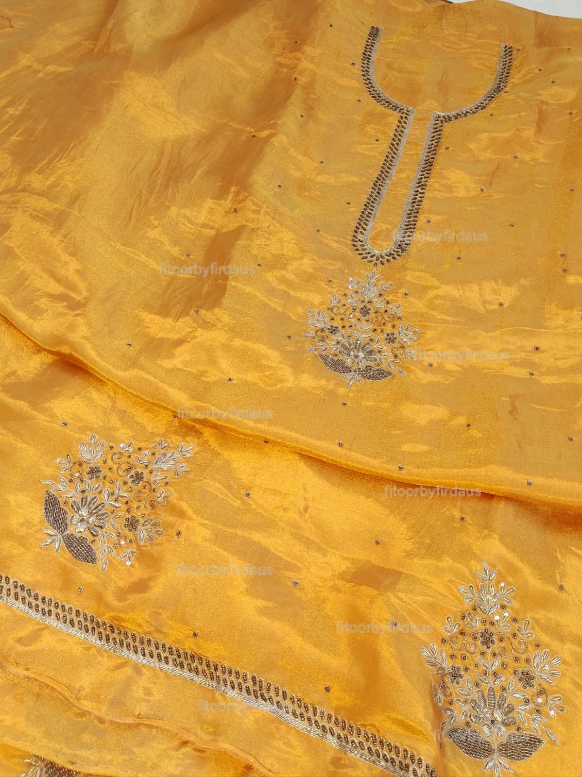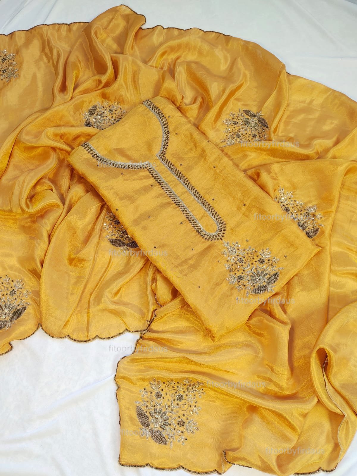 Pure Tissue Silk suit set with zardozi and beads Hand work